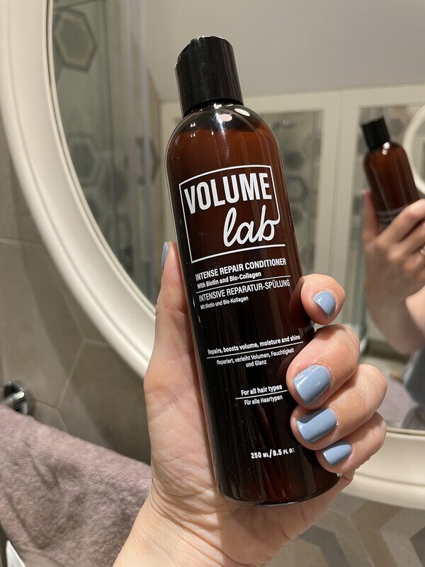 Intensywnie odbudowująca odżywka VOLUME LAB (250 ml): Po umyciu włosów szamponem nałóż odżywkę na całe włosy. Pozostaw odżywkę na 1-2 minuty, a następnie spłucz ciepłą wodą.